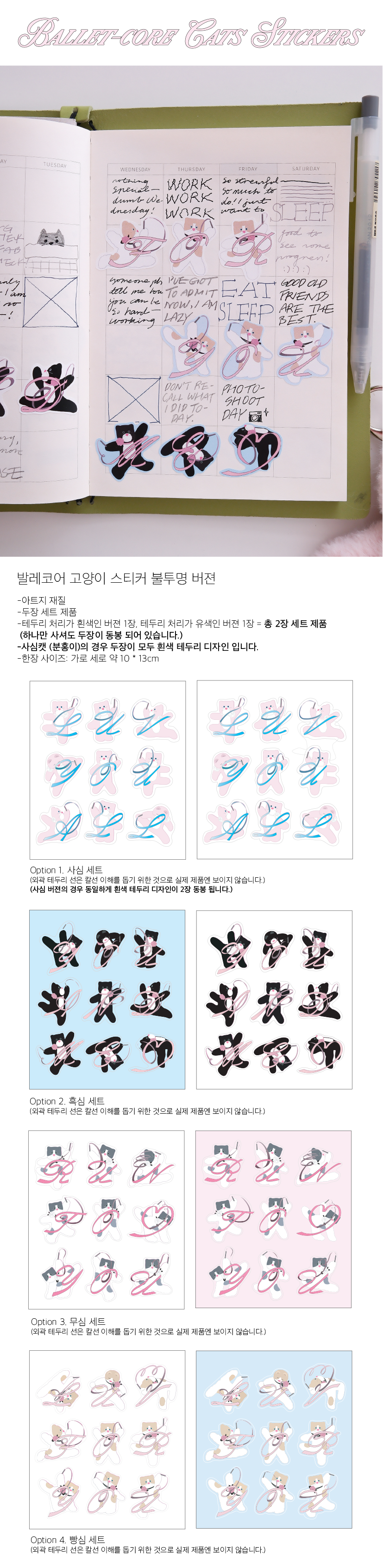 Balletcore Cat Sticker (불투명 두장 세트)