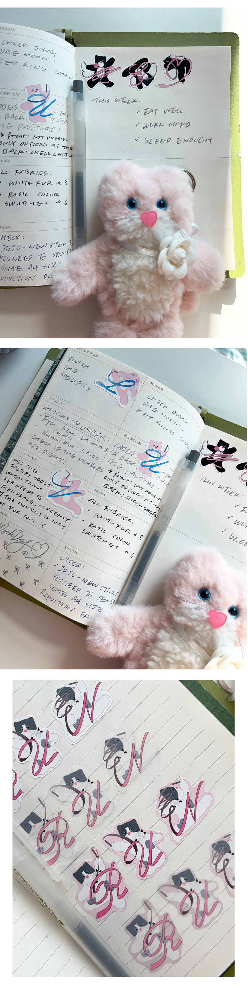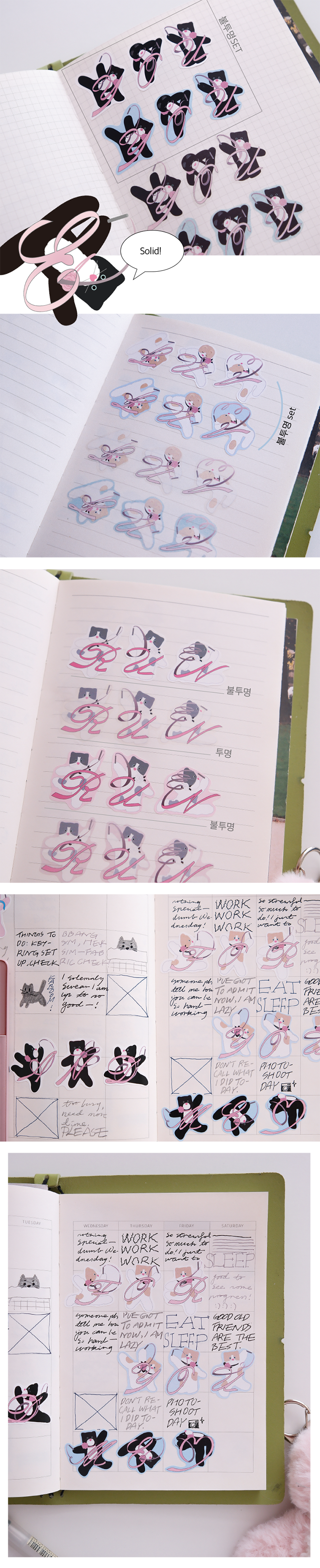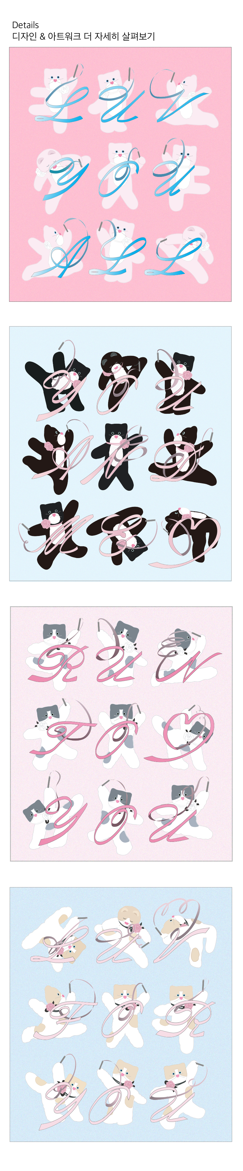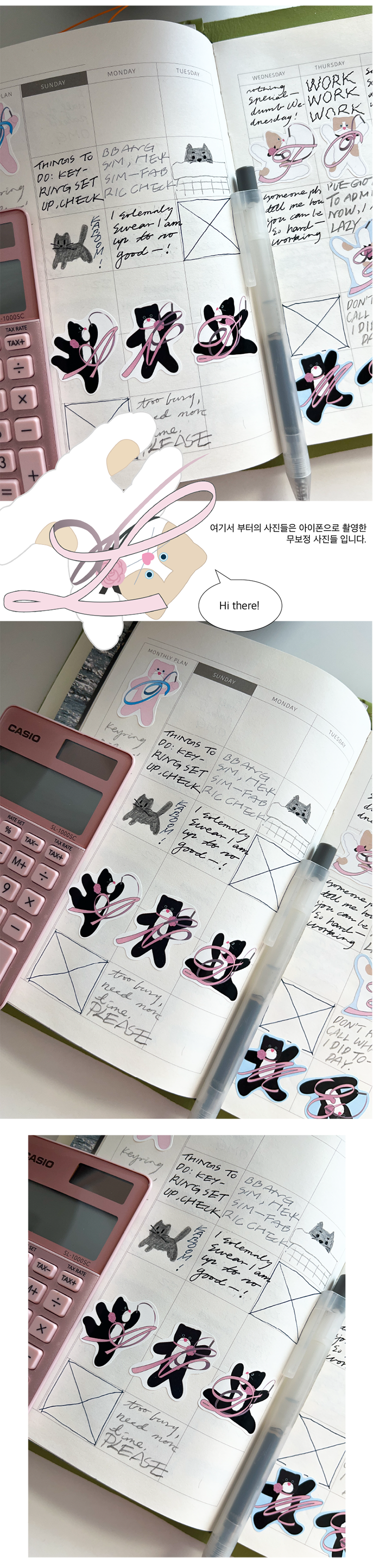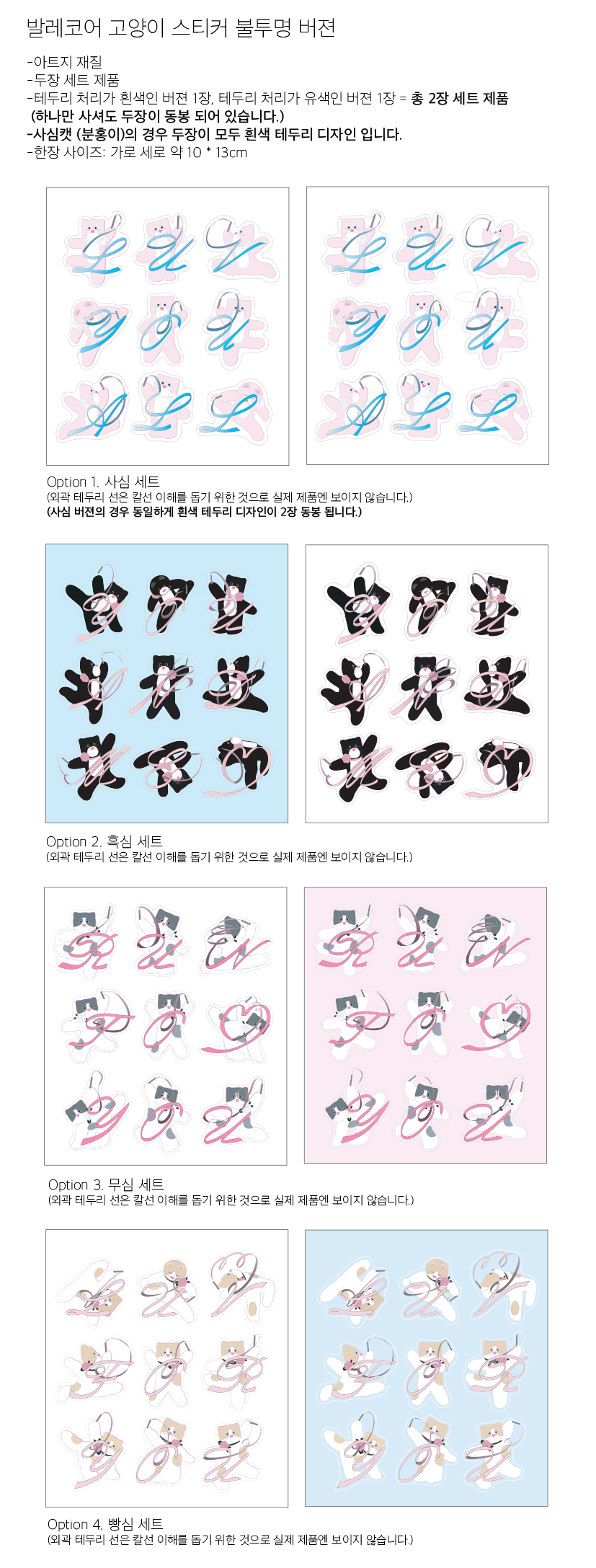 -사심캣 (분홍이)의 경우 두장이 모두 흰색 테두리 디자인 입니다.