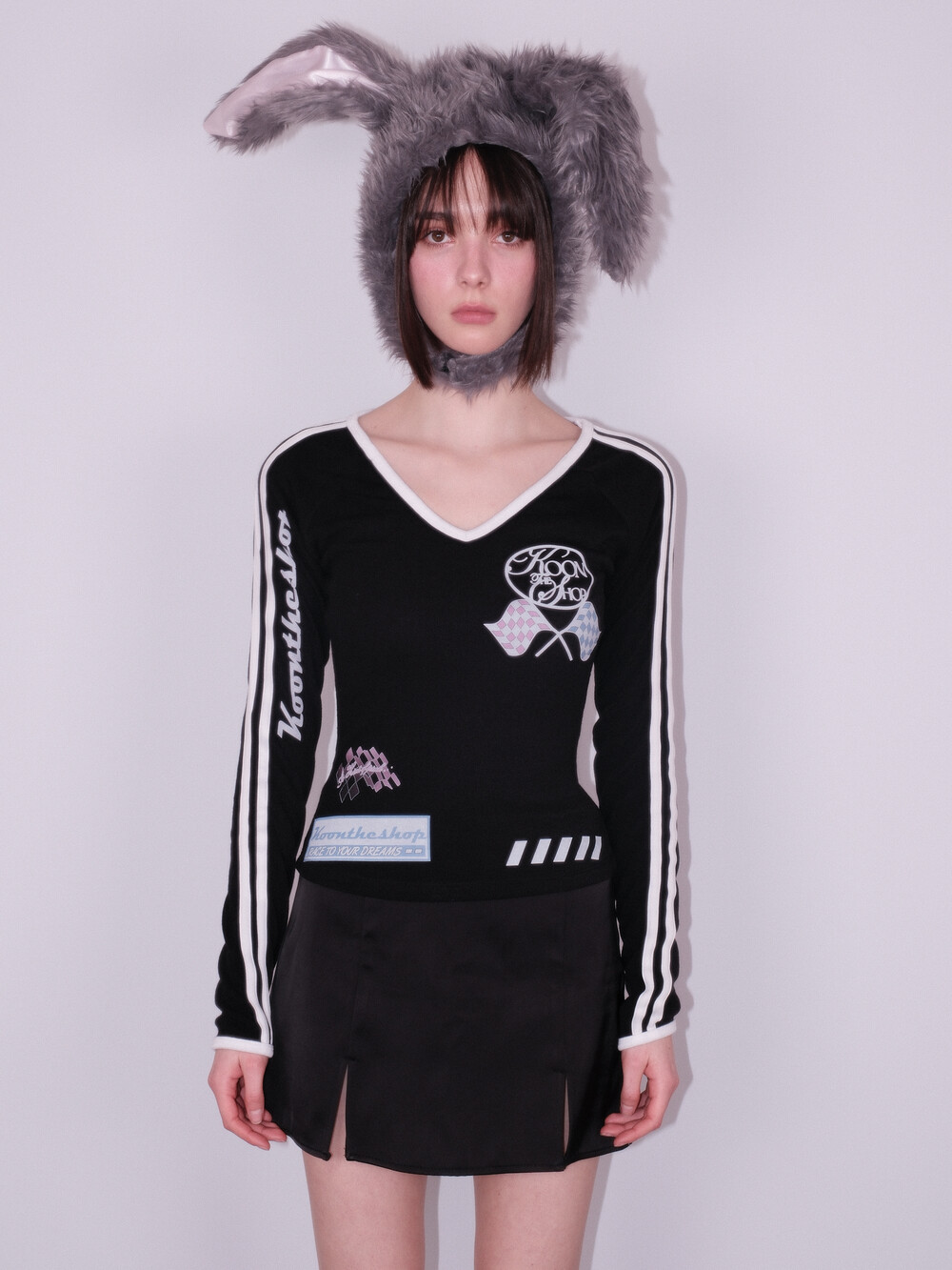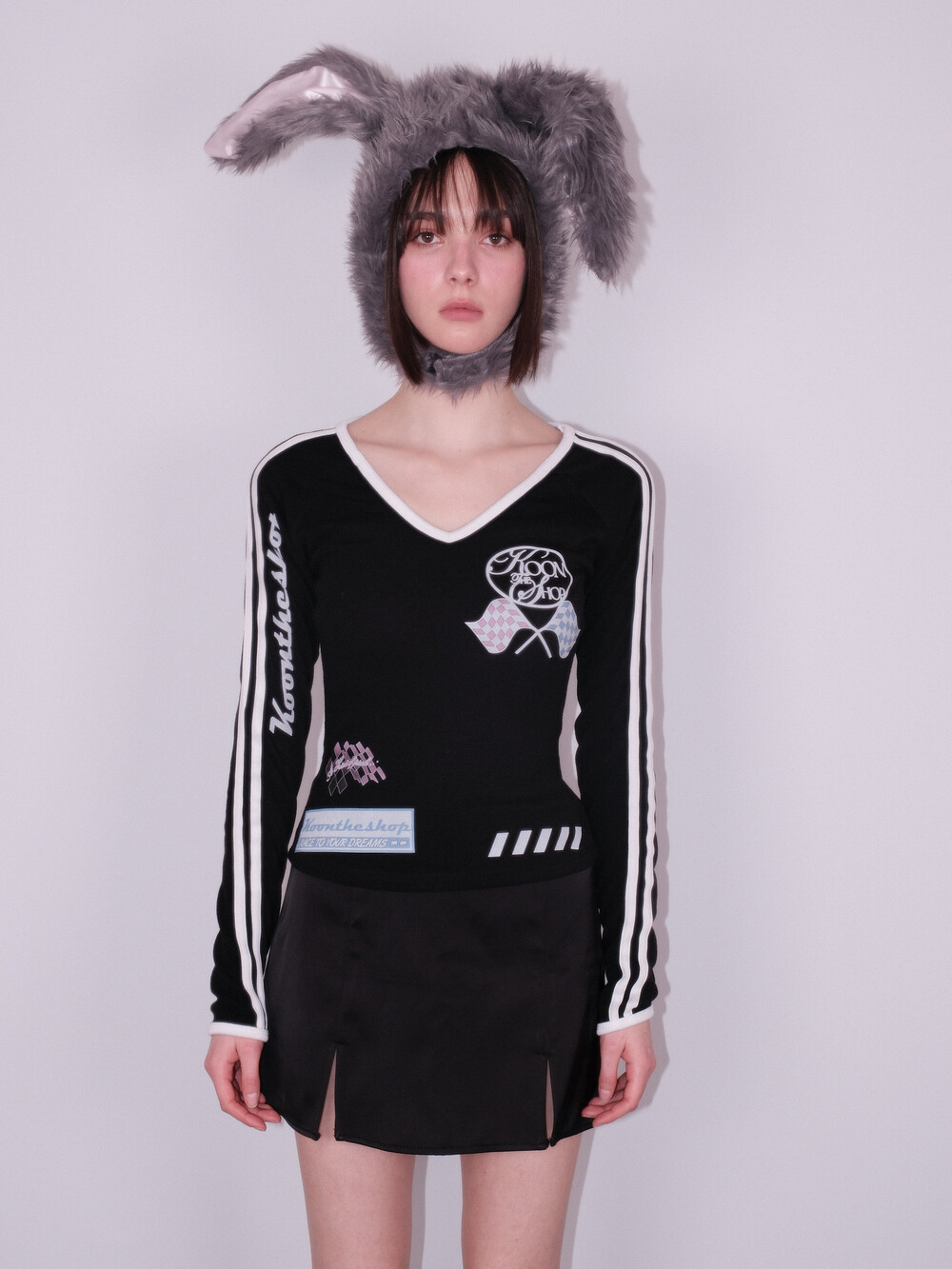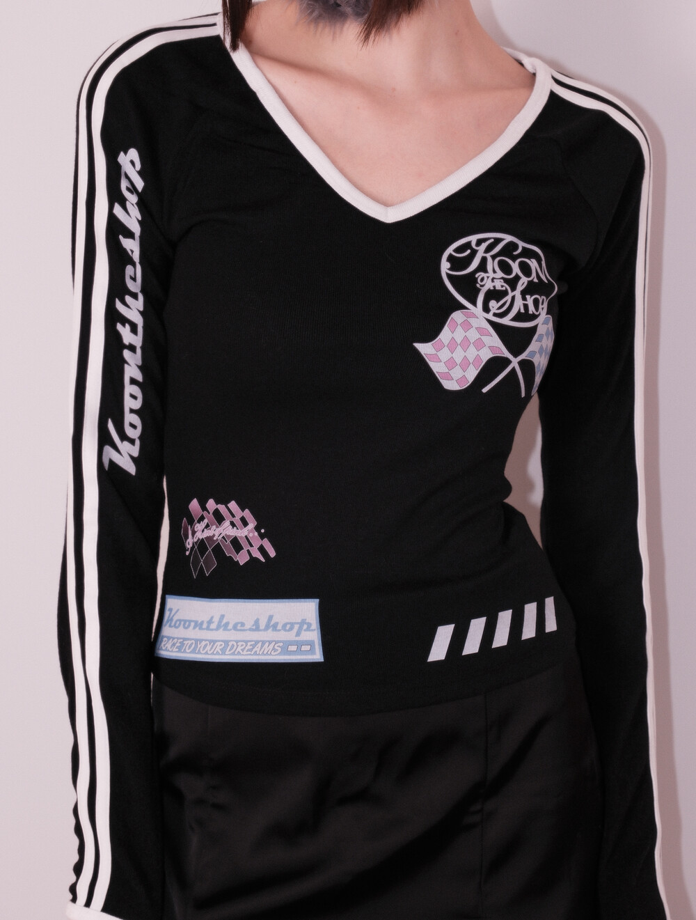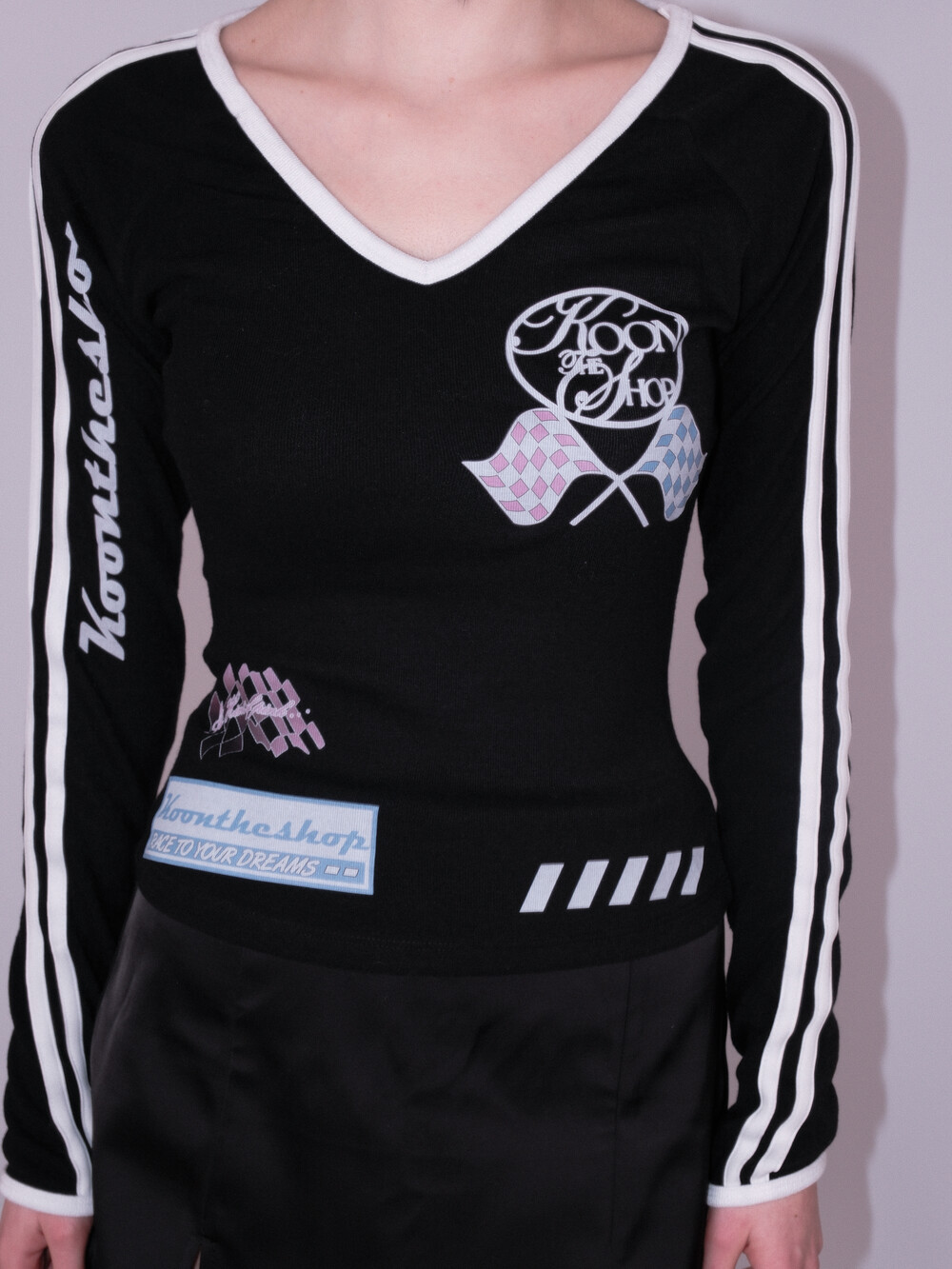보다 요즘 감성의 y2k 감성으로 재해석한 슬림핏 여성 레이싱티.
