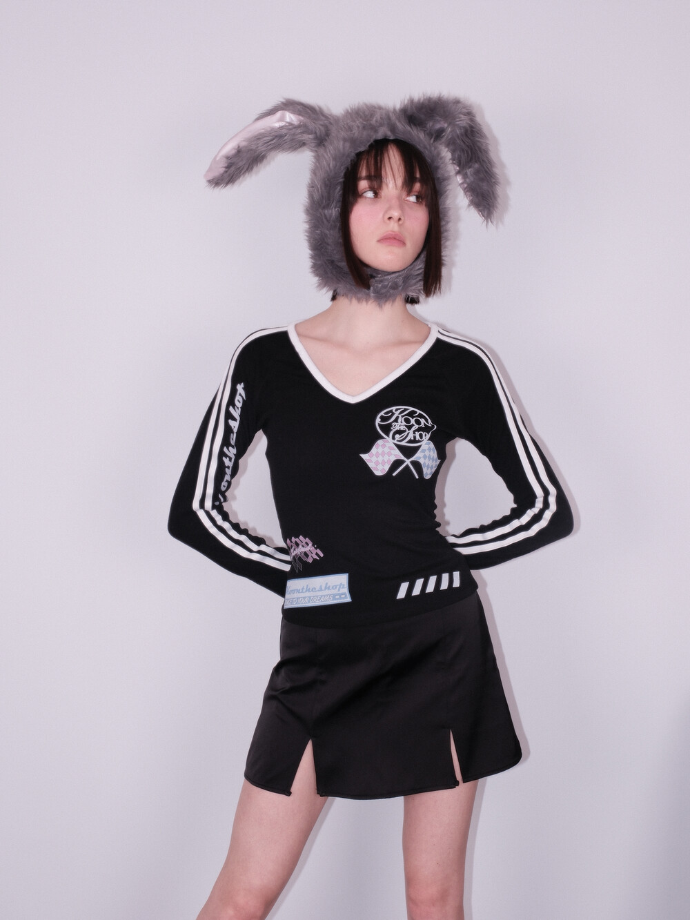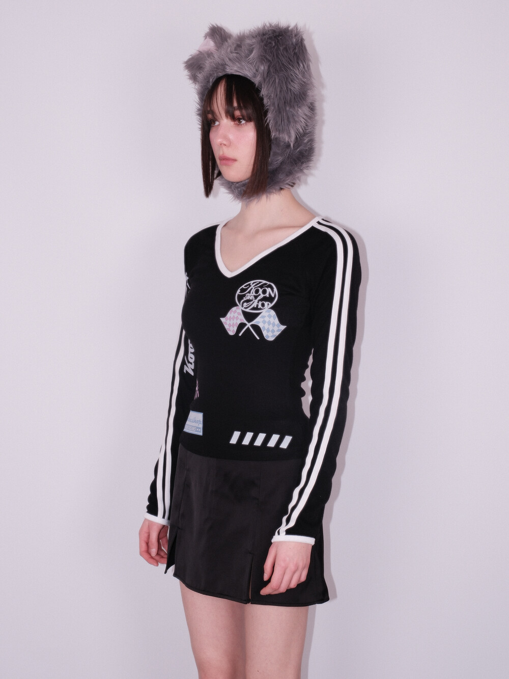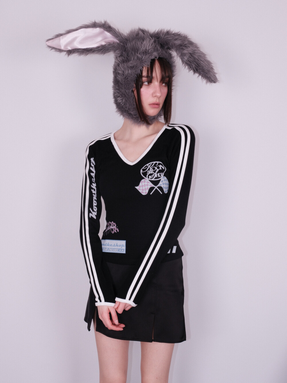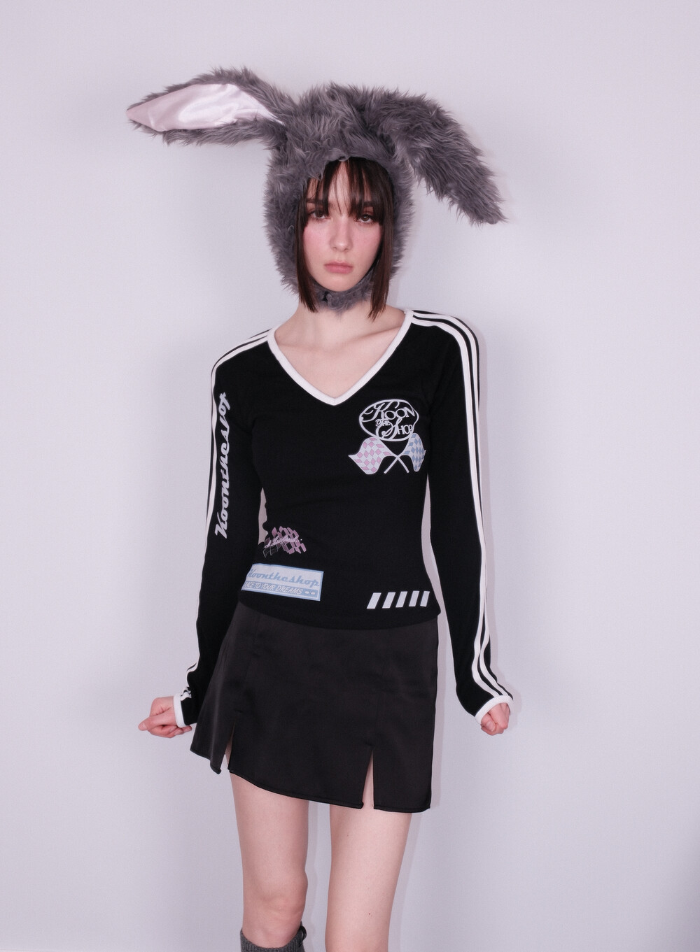 보다 요즘 감성의 y2k 감성으로 재해석한 슬림핏 여성 레이싱티.
